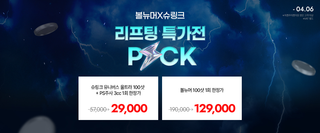 슈링크 유니버스 부스터 100샷 + 오로라앰플 (300샷 이상 시)▶2세대 슈링크 초음파 리프팅과 오로라 앰플로 수분, 광채, 탄력, 피부결 개선 *이벤트 기간 : ~2026.04.06까지