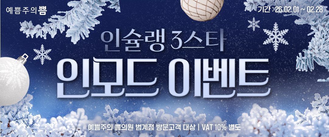 이달의 이벤트 part.2 [2월이벤트 ~2.28까지] 미백/진정/재생/수분/비타민/아쿠아필(1,2제)/스케일링/초음파 기계 관리 수딩셀(12분)/LDM-ECO(6분) * 택 2, 5회 38% 300,000 490,000